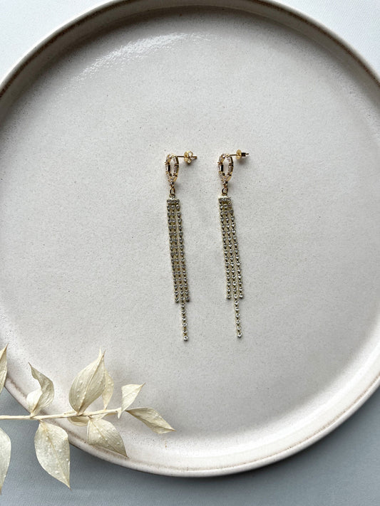 Braut Ohrringe Gold Glitzer – Lange Ohrringe aus Edelstahl mit Zirkonia | Glamouröser Brautschmuck & Partystyle
