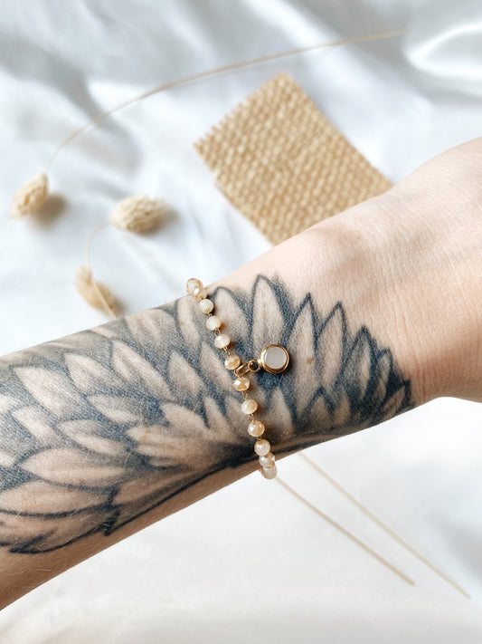Zartes Braut Armband in Gold mit beigem Glasstein – Eleganter Hochzeitsschmuck aus Edelstahl | Verstellbar & kombinierbar
