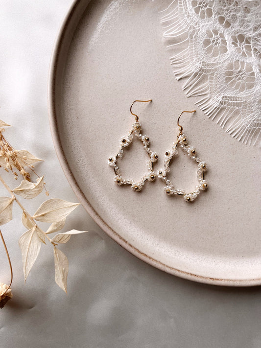 Tropfenförmige Brautohrringe mit kleinen Perlen – Handgefertigter Hochzeitsschmuck aus Edelstahl & Schmuckdraht