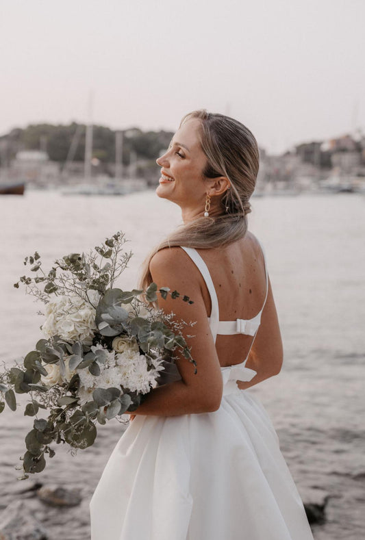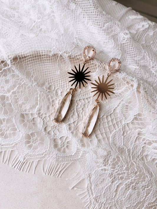 Weiße Brautohrringe mit goldenen Details in Tropfenform