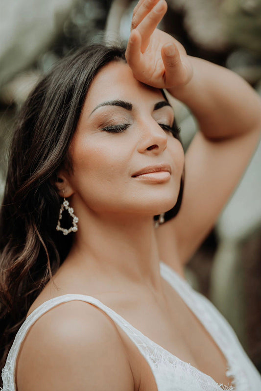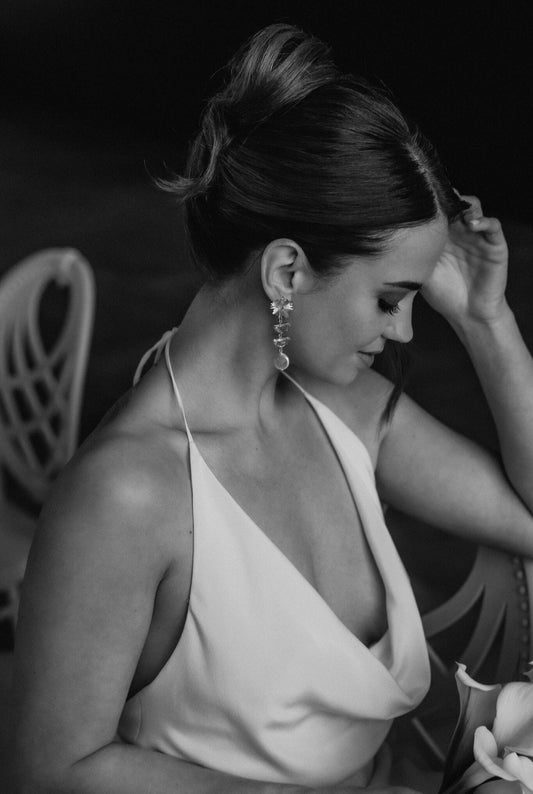 Handgemachte Blumen Brautohrringe mit Tropfenanhänger – Statement Ohrringe zur Hochzeit | Brautschmuck mit 925 Silber | Geschenkidee Geburtstag
