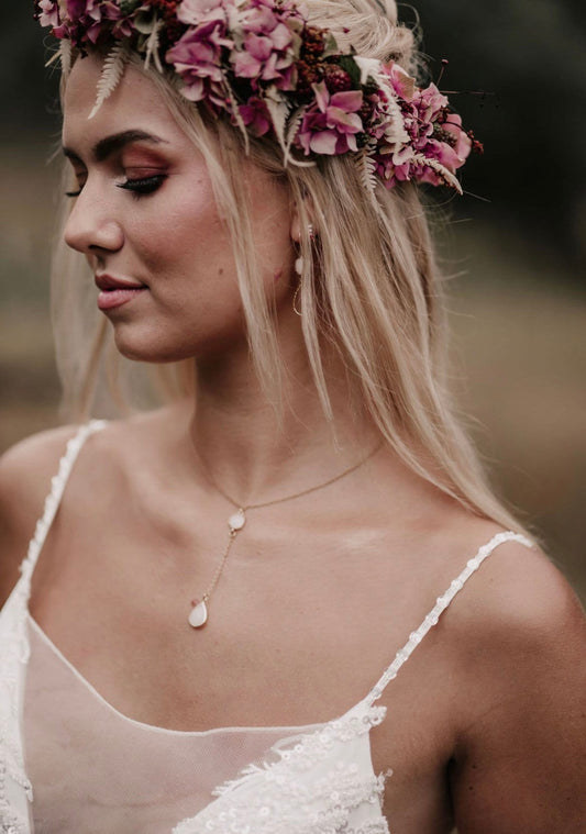 Braut Schmuckset Gold mit Blüten und Tropfen – Handgefertigtes Schmuckset aus Edelstahl mit Zirkoniablüten & Glastropfen | In Gold oder Silber erhältlich
