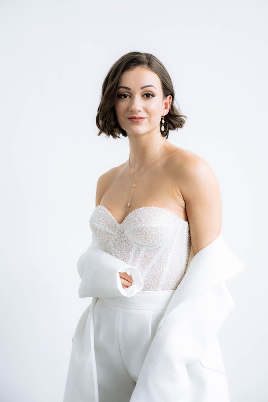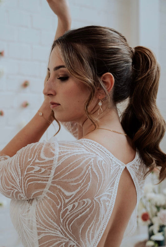 Braut Schmuckset Gold – Handgefertigtes Schmuckset mit Zirkoniafächer & Glastropfen | Edelstahl vergoldet