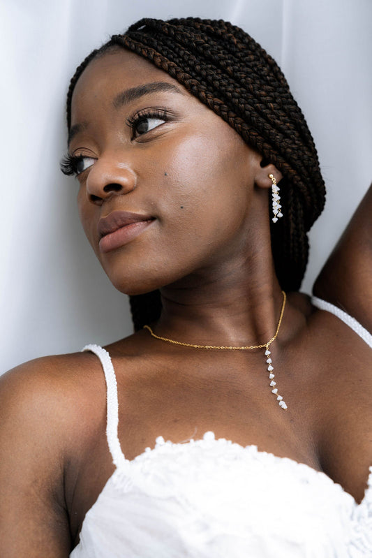 Filigranes Brautschmuckset in Gold – Rechteckige Glasanhänger in Cremeweiß