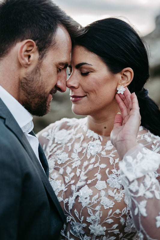 Schmuckset für die Braut – Handgefertigtes Set mit Seidenblüten & Glasperlen | Edelstahl in Gold, Silber oder Roségold