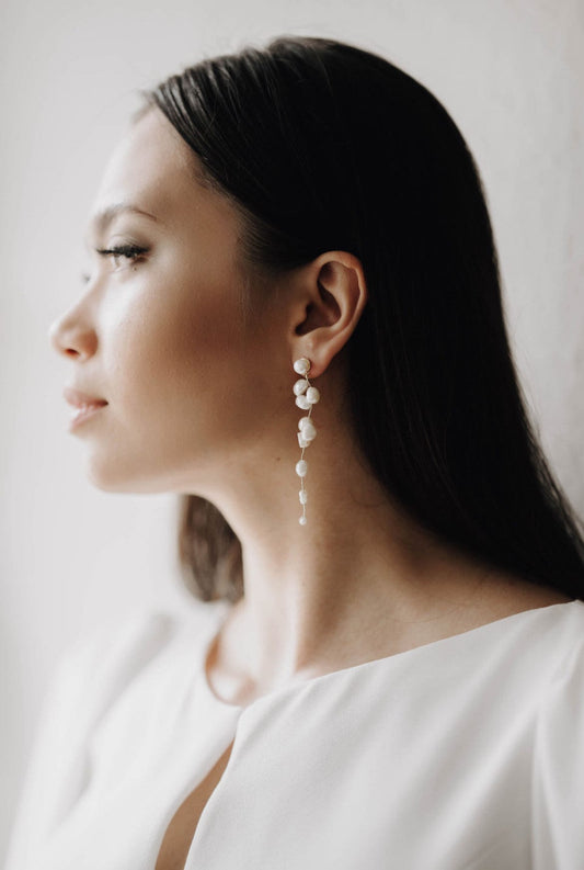 Lange Perlenohrringe für die Braut – Eleganter Brautschmuck mit Süßwasserperlen in Gold oder Silber