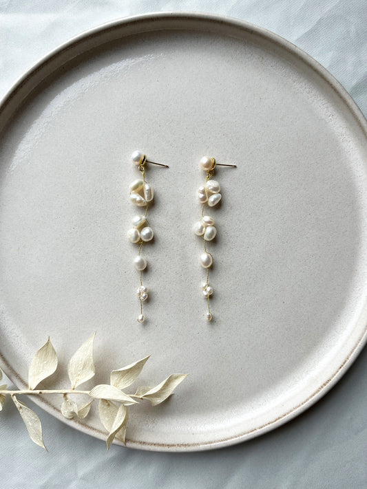 Statement Perlenohrringe für die Braut – Opulenter Brautschmuck mit Edelstahlstecker & Perlensträngen