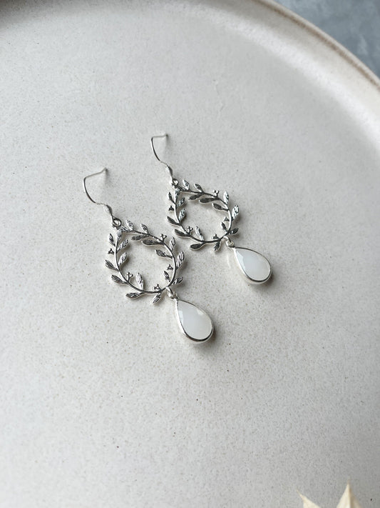 Florale Brautohrringe mit Tropfenanhänger – Zarter Brautschmuck in Sterling-versilbertem Edelstahl