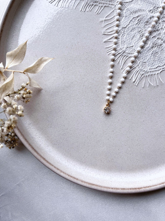 Zarter Perlenchoker mit Strassanhänger – Eleganter Brautschmuck in Gold oder Silber