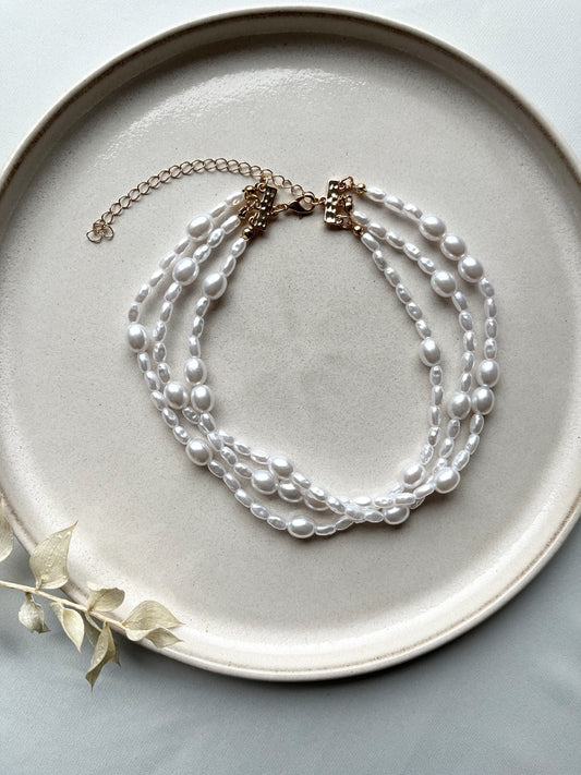 Perlen Statement Choker für die Braut – Mehrreihiger Brautschmuck mit Edelstahlverschluss