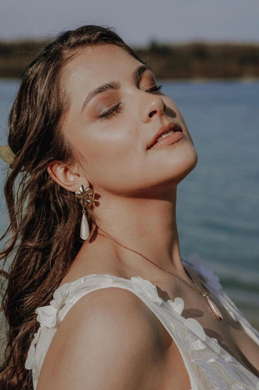 Florale Brautohrringe mit Tropfenanhänger – Zarter Brautschmuck aus vergoldetem Edelstahl