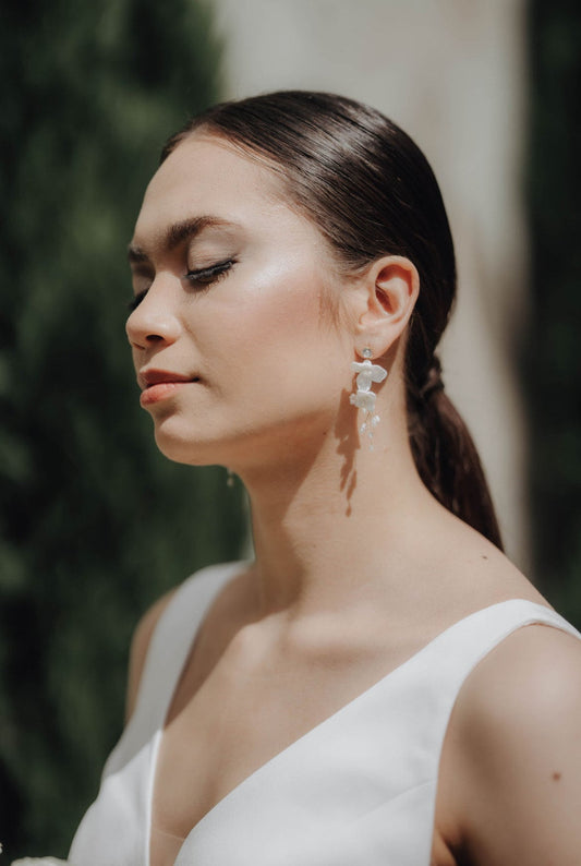 Florale Brautohrringe – Zarter Blütenschmuck mit Keramik & Glasperlen in Gold oder Silber
