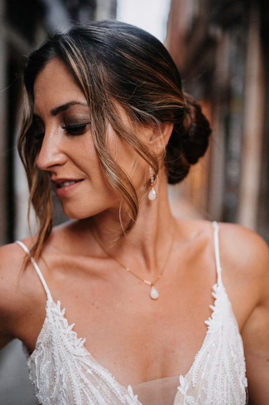 Schlichte Kette mit Tropfen Geschenk Trauzeugin – Edelstahl Halskette mit Glastropfen | In Gold, Silber oder Roségold
