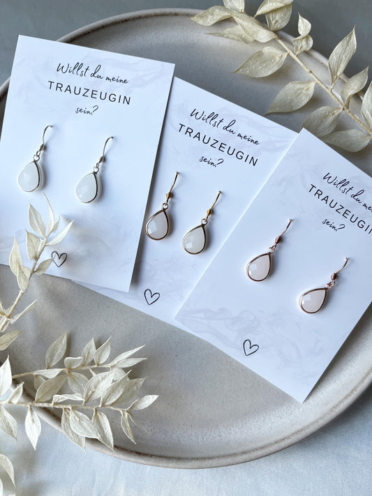 Geschenkkarte "Willst du meine Trauzeugin sein?" – Schmuckgeschenk mit filigranen Tropfenohrringen in Gold, Silber oder Roségold
