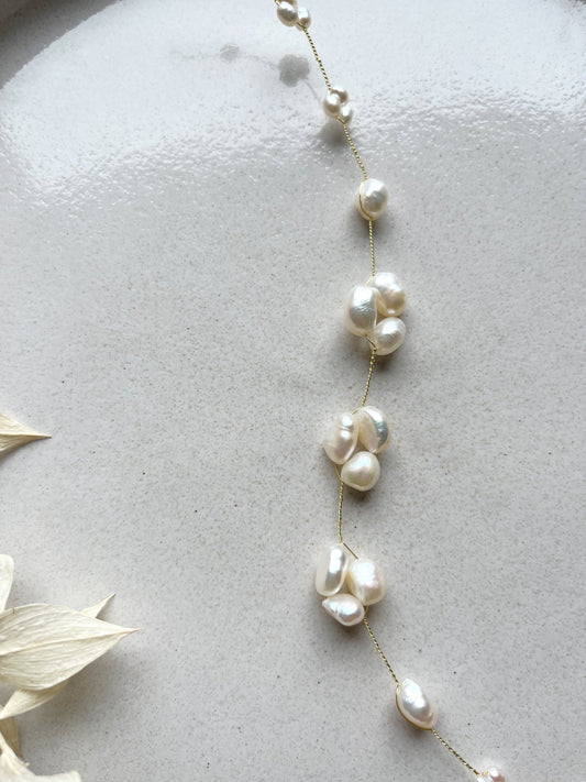 Zarter Braut Haarschmuck mit echten Süßwasserperlen – Handgefertigter Perlen-Haarreif zur Hochzeit | Goldener Schmuckdraht