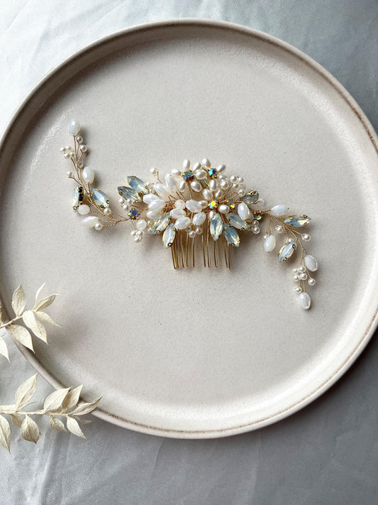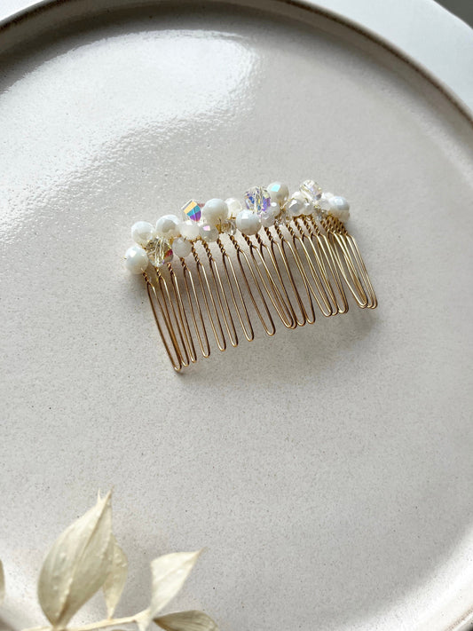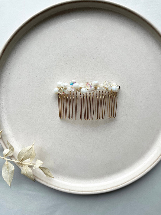 Perlenhaarkamm für die Braut – Zarter Brautschmuck mit Glas- & Kristallperlen in Gold oder Silber