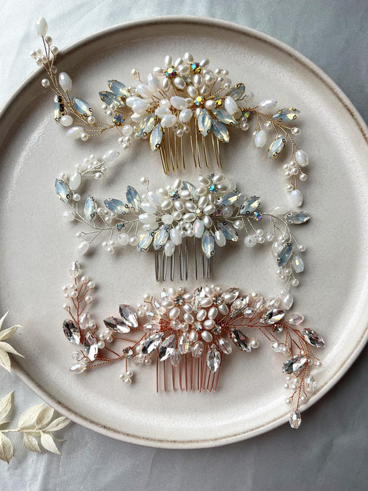 Braut Haarkamm mit Perlen & Strass – in Gold, Silber oder Roségold