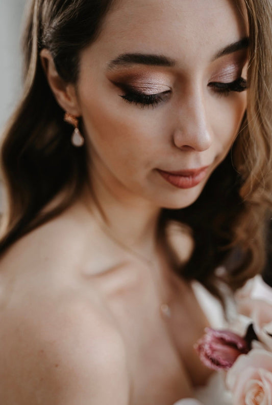 Rosévergoldete Y-Brautkette mit Zirkonia-Fächer & Tropfenanhänger – Edelstahl-Halskette für Hochzeit & Alltag | Auch in Gold & Silber