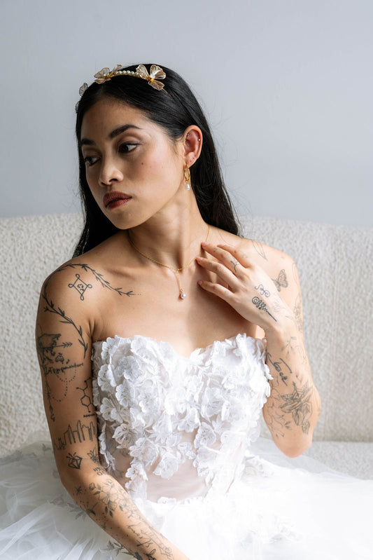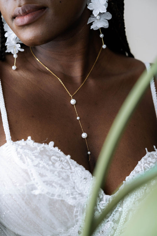 Y-Brautkette mit Perlen – Vergoldete Edelstahlkette zur Hochzeit | Zarter Brautschmuck für ein betontes Dekolleté