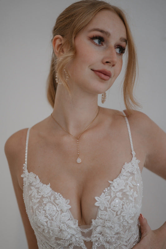 Zarte Brautkette mit Tropfenanhänger – Vergoldete Edelstahl-Halskette für die Hochzeit | Auch in Silber erhältlich