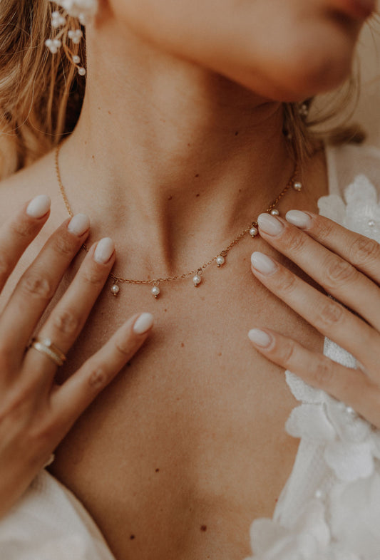 Zarte Perlen-Halskette für die Braut – Eleganter Brautschmuck in Gold