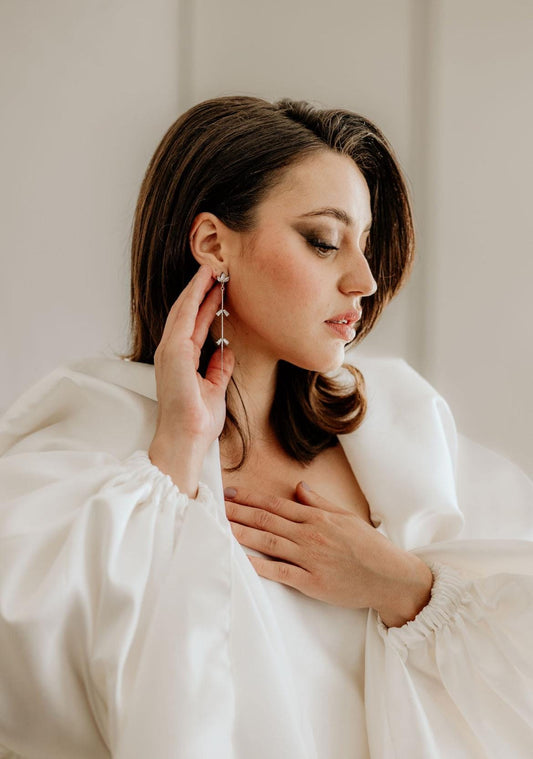 Lange Perlenohrringe für die Braut – Eleganter Brautschmuck aus vergoldetem Edelstahl