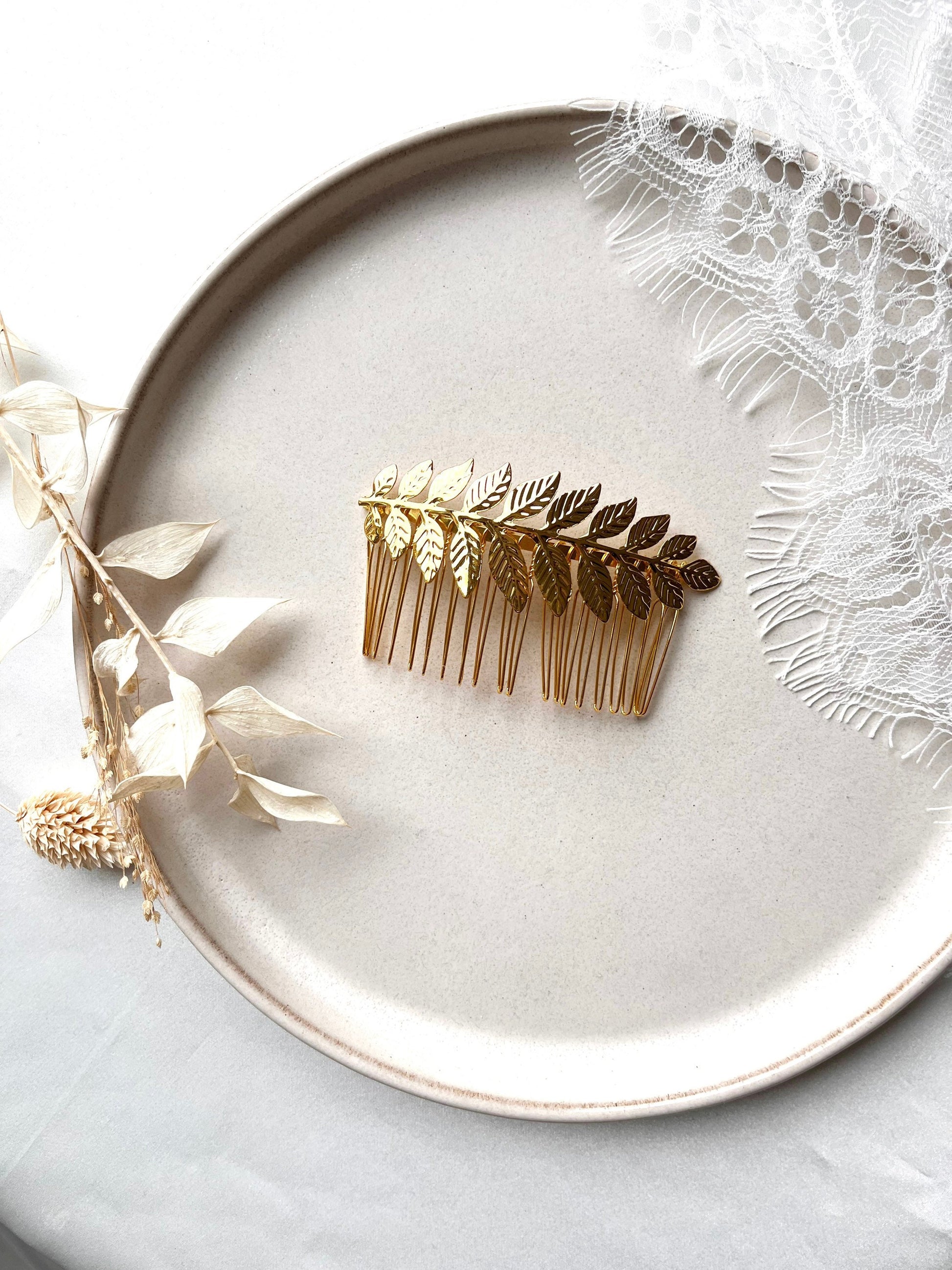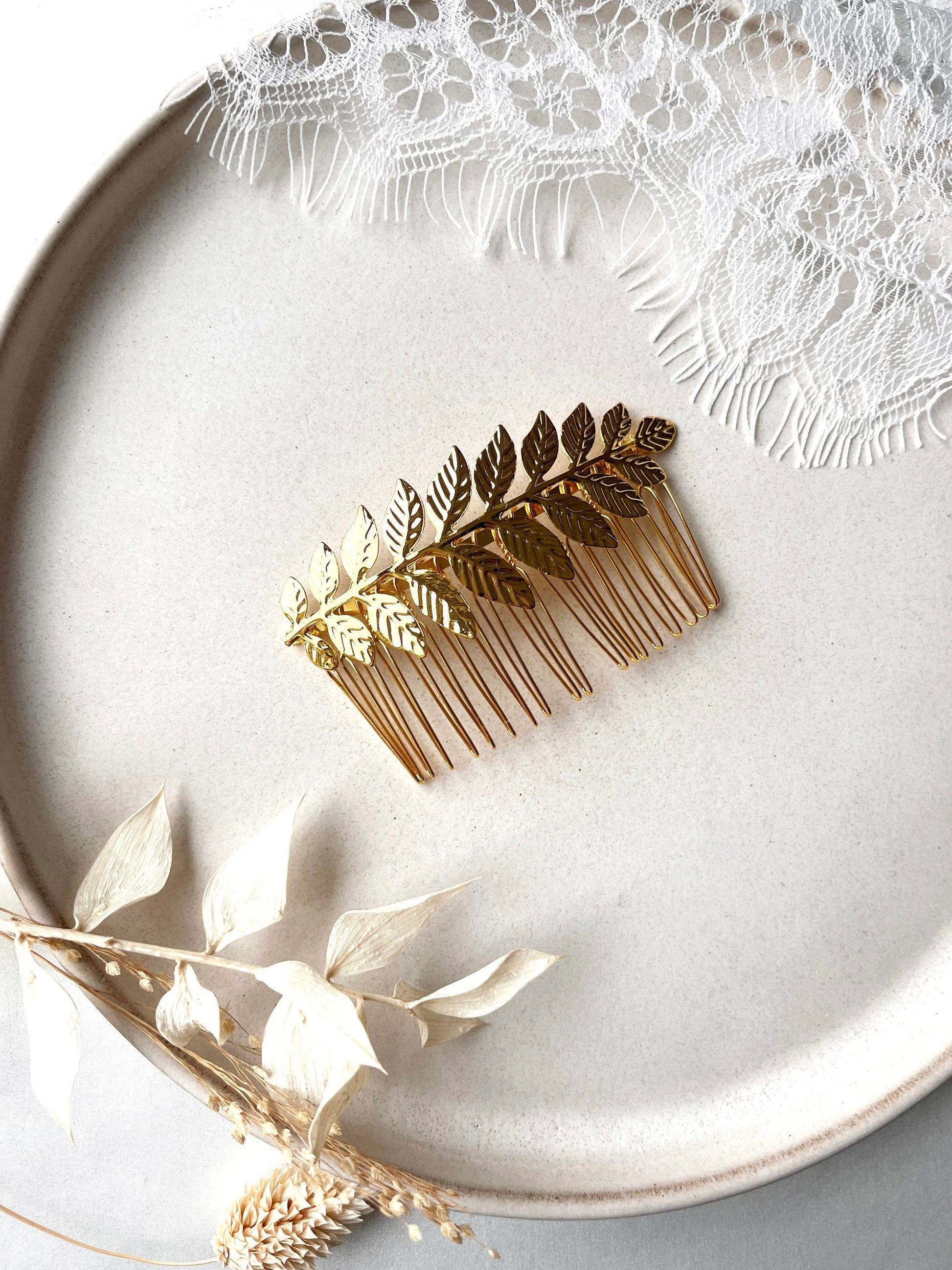 Zarte, filigrane Blätter schmiegen sich harmonisch an dein Haar und verleihen jedem Look eine mühelose Leichtigkeit – ob in einer locker gesteckten Hochsteckfrisur, halboffenen Wellen oder einem romantischen Dutt.