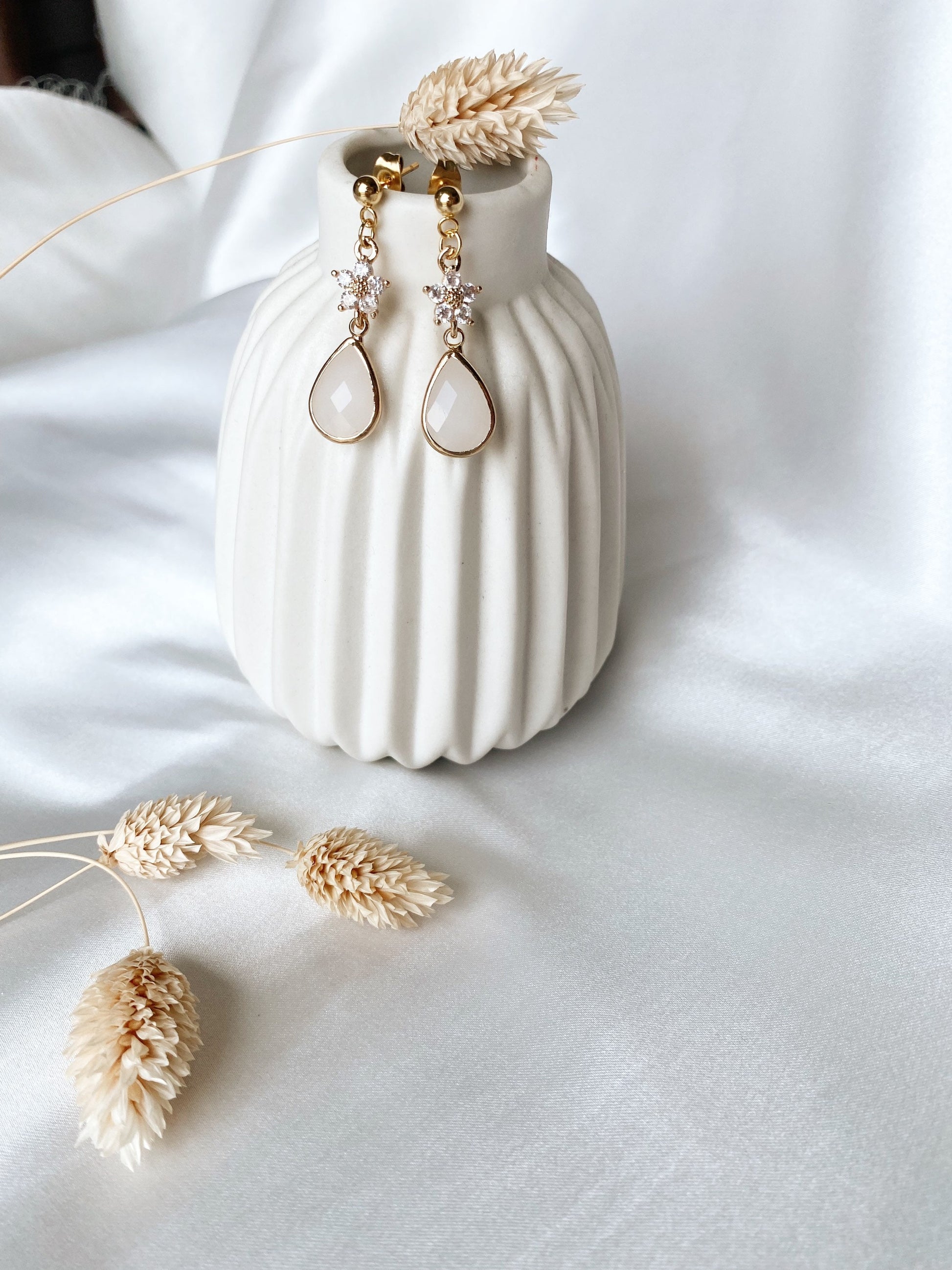 Ob zur Hochzeit, zu einem floralen Kleid oder als feiner Hingucker im Alltag – diese Ohrringe fügen sich mühelos in jeden Look ein und sorgen sofort für eine feminine, leichte Ausstrahlung. Sie wirken edel, zeitlos und gleichzeitig wunderbar modern.