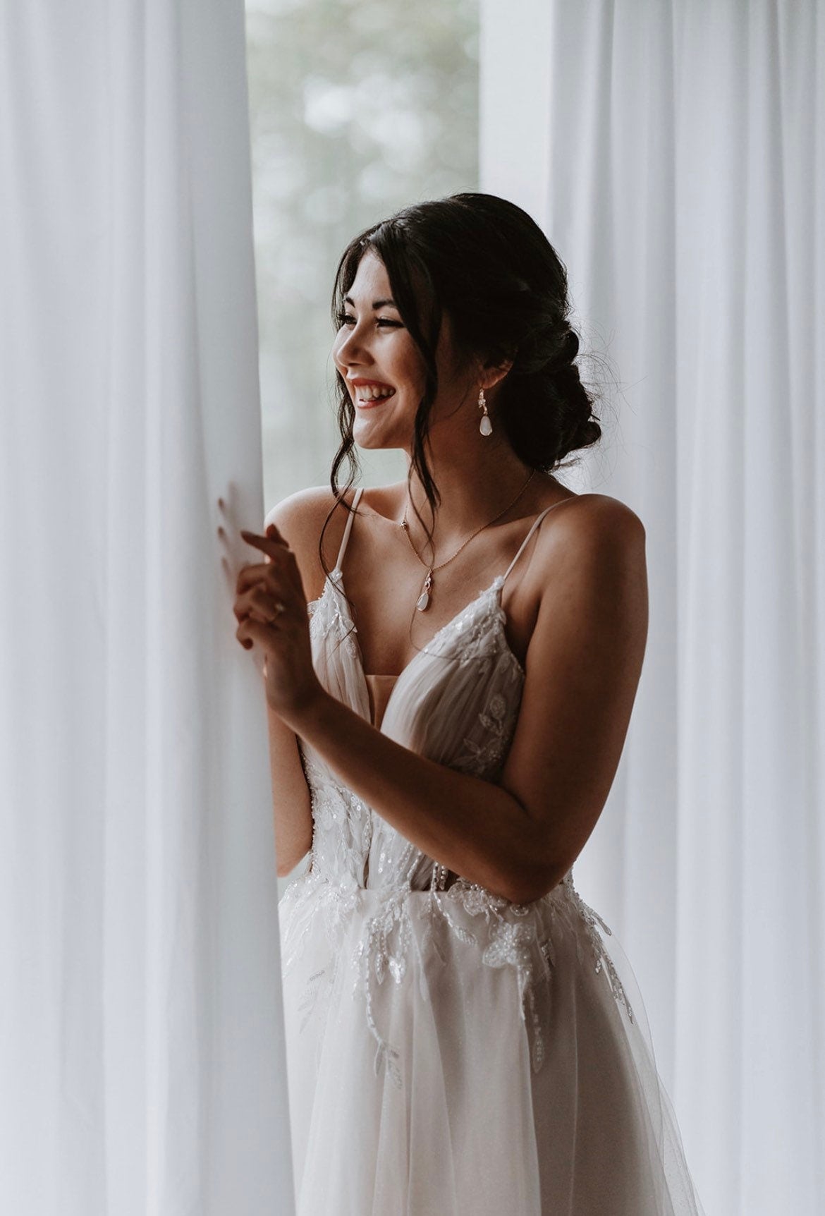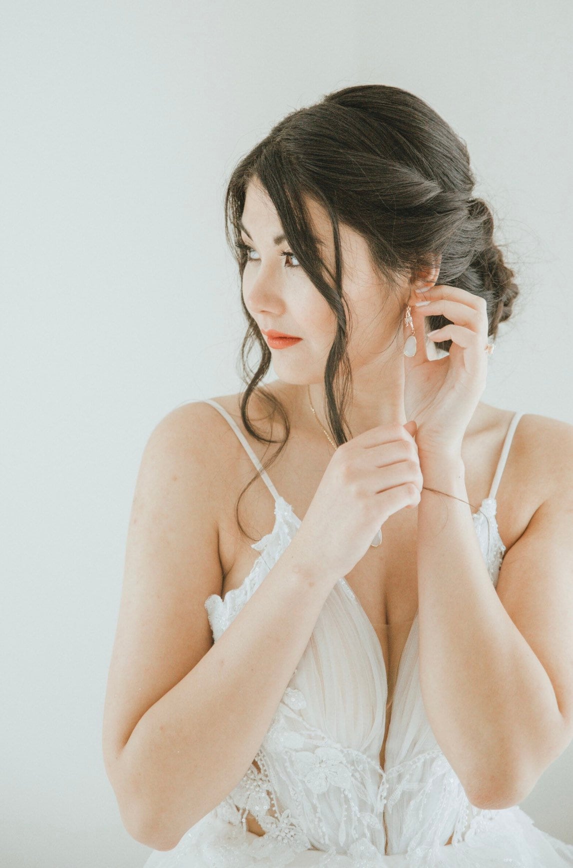 Dieses zarte Brautschmuck-Set wurde mit Liebe zum Detail handgefertigt – für Bräute, die sich an ihrem Hochzeitstag besonders fühlen möchten.