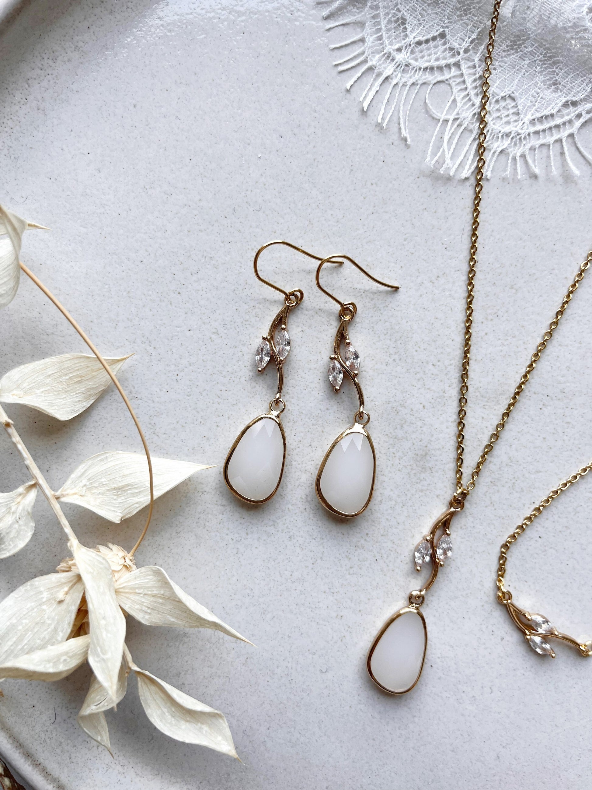 Brautschmuck Set mit Glastropfen – vergoldet & handgefertigt für deinen großen Tag
