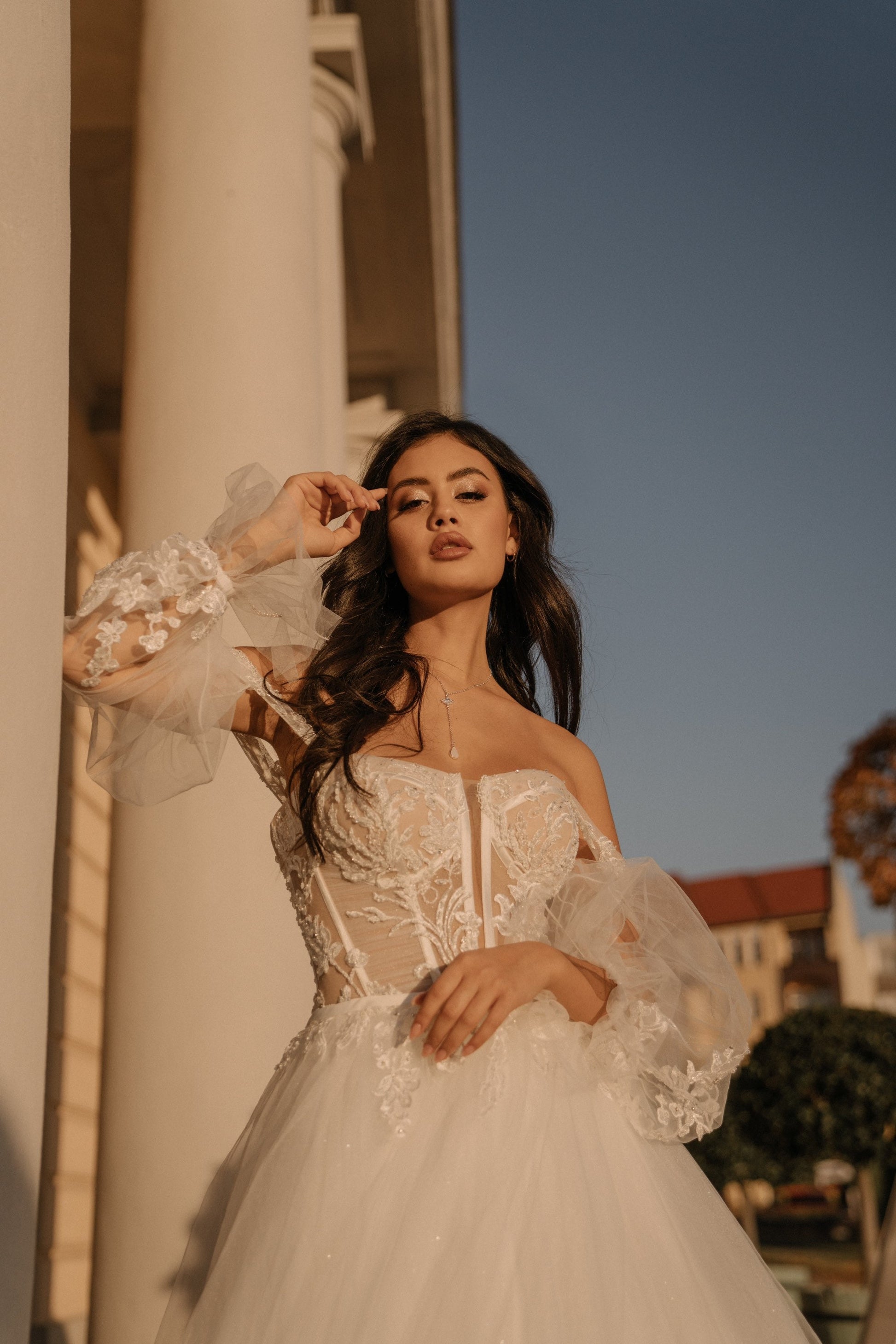 Die filigrane Kette schmiegt sich sanft an dein Dekolleté, während Ohrringe und Armband das Licht auf wunderschöne Weise einfangen.