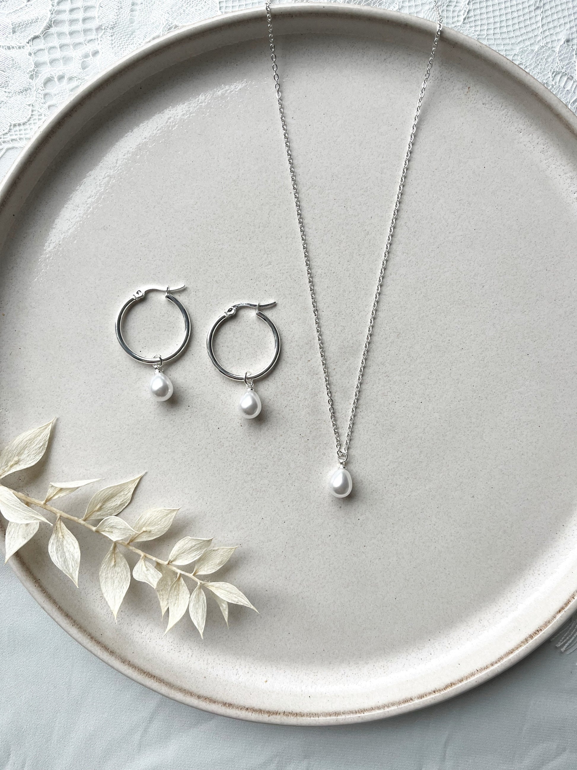 Braut Perlen Schmuckset – Edelstahl Creolen & Kette mit abnehmbaren Perlenanhängern | In Gold oder Silber, handgefertigt