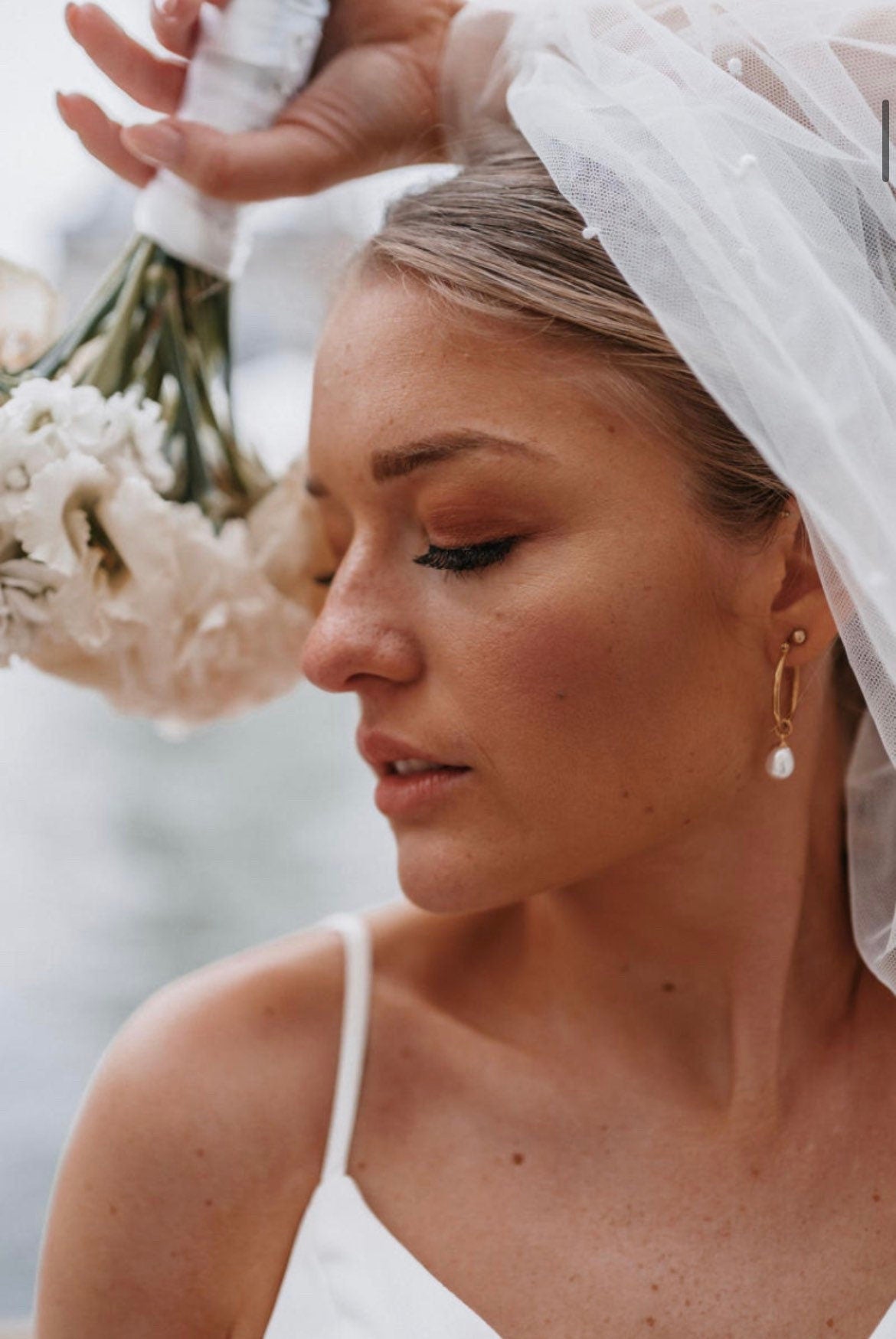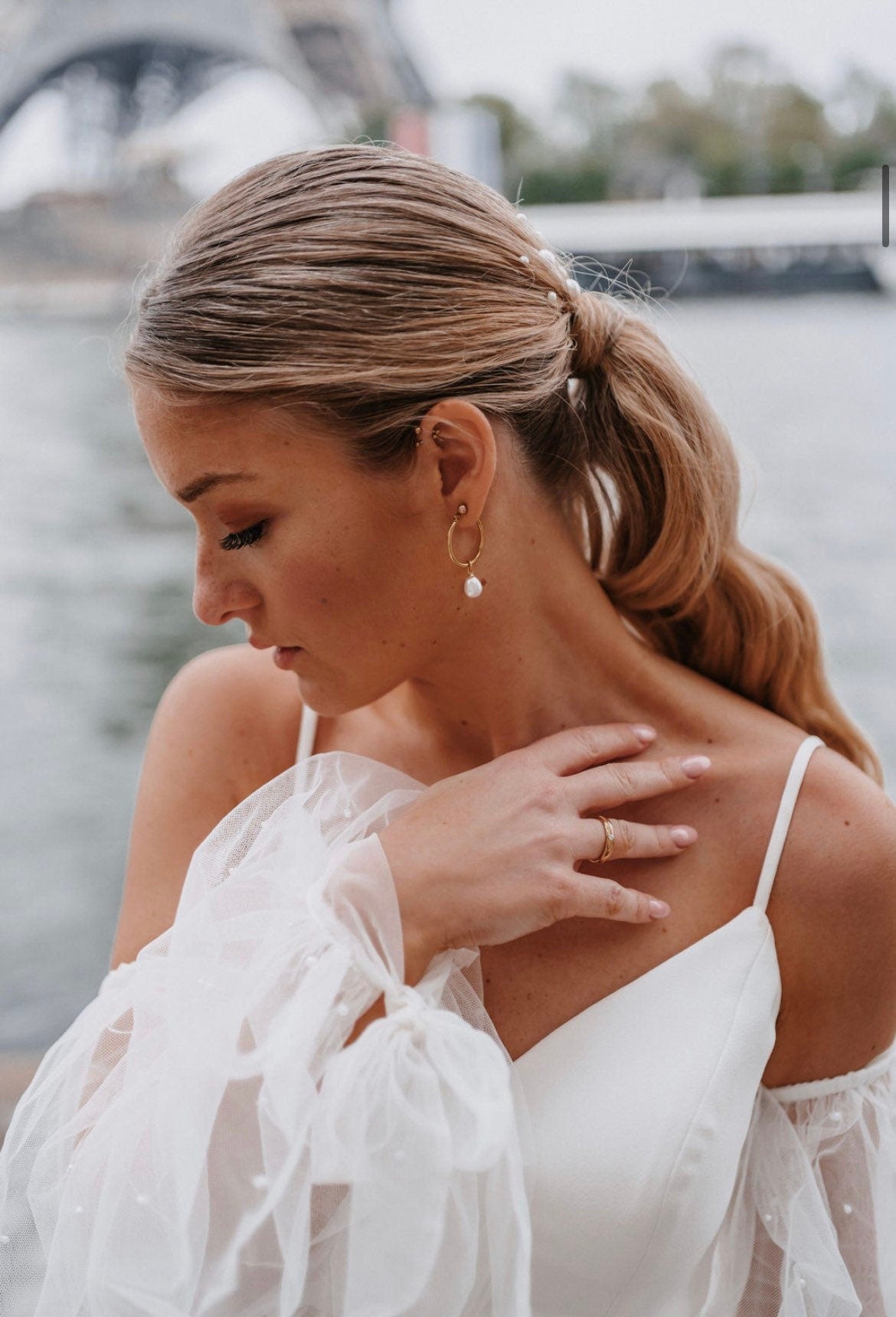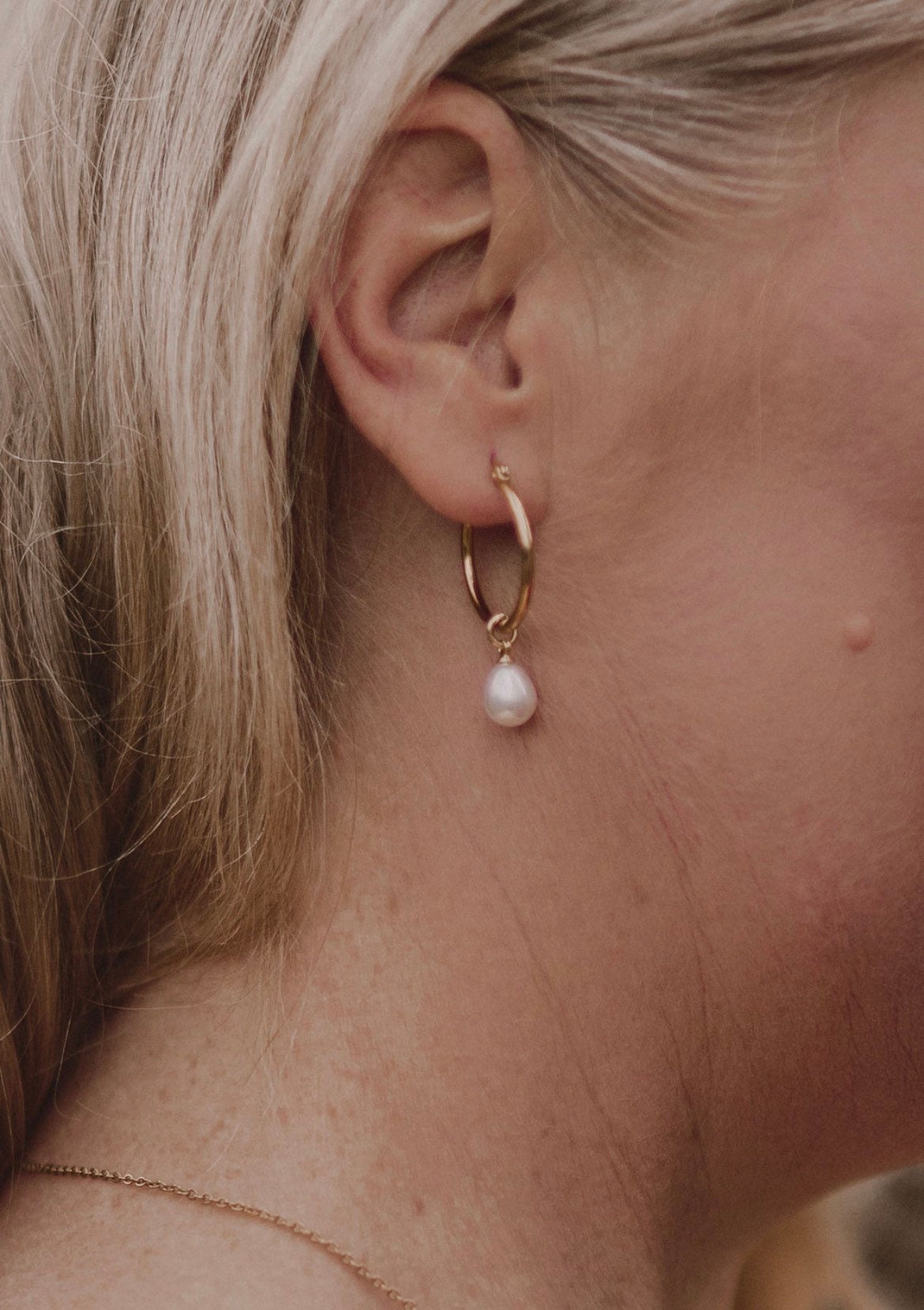 Die Perlenanhänger der Ohrringe sind abnehmbar – so kannst du die Creolen auch ganz schlicht tragen und das Set wunderbar in deinen Alltag integrieren.