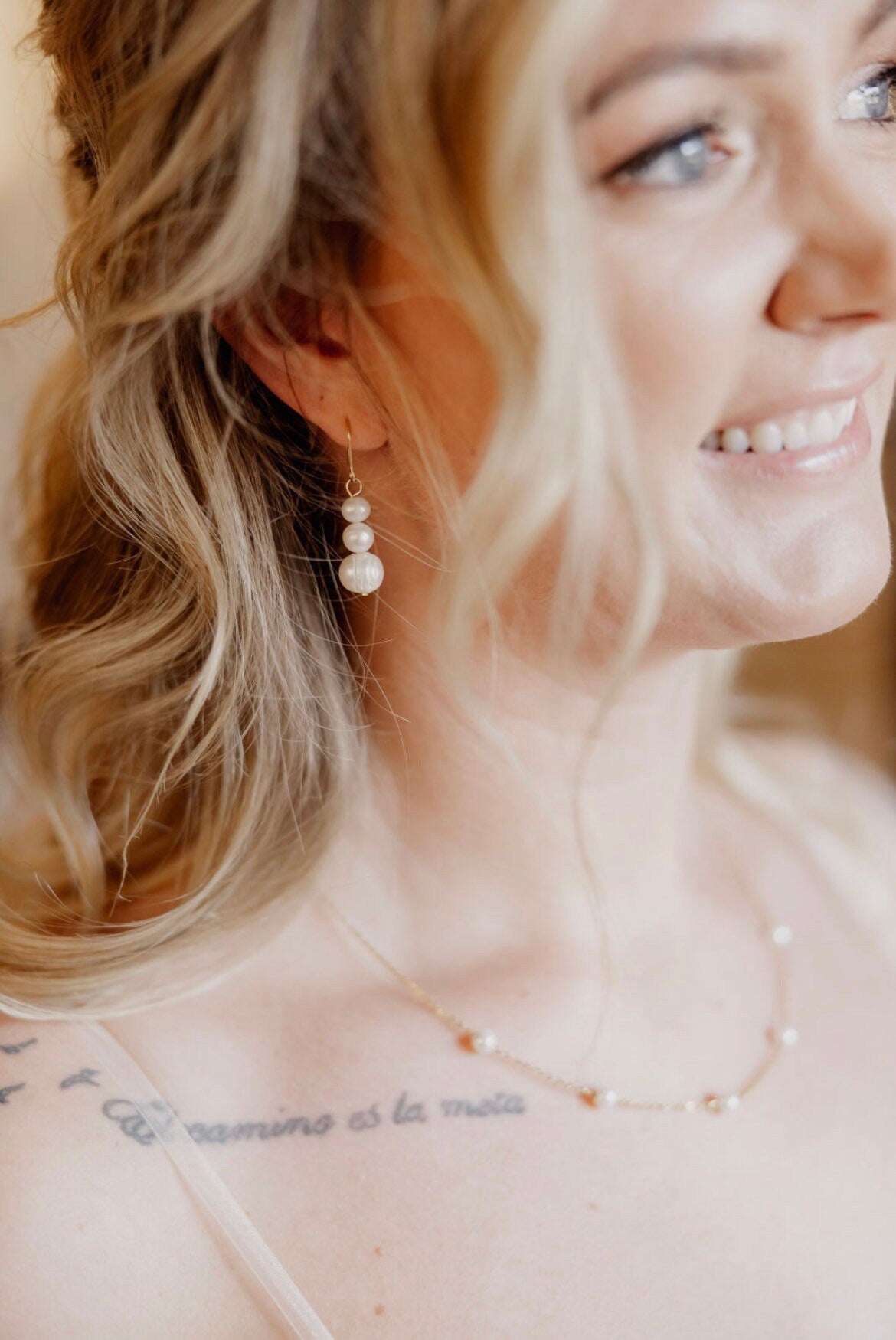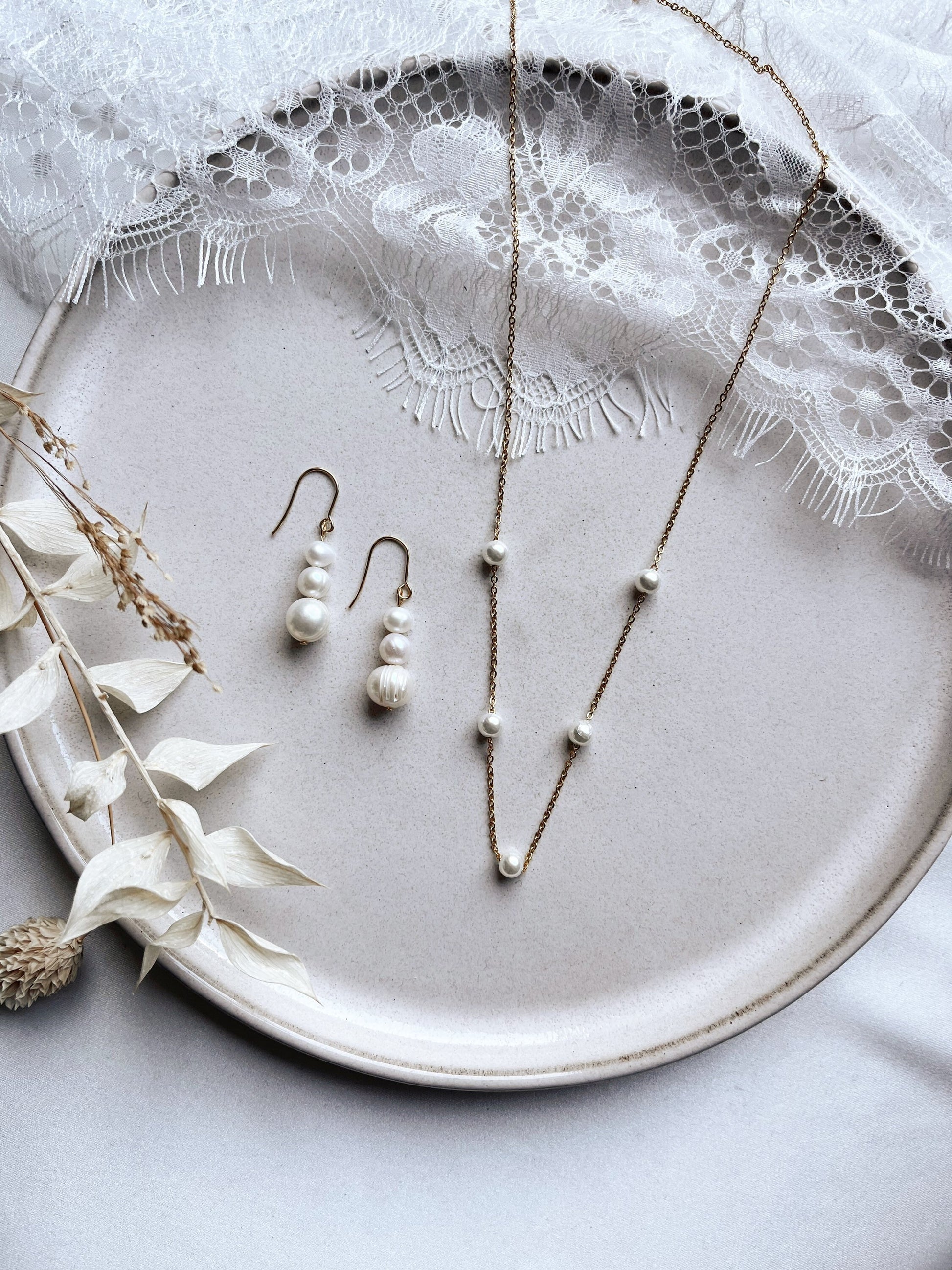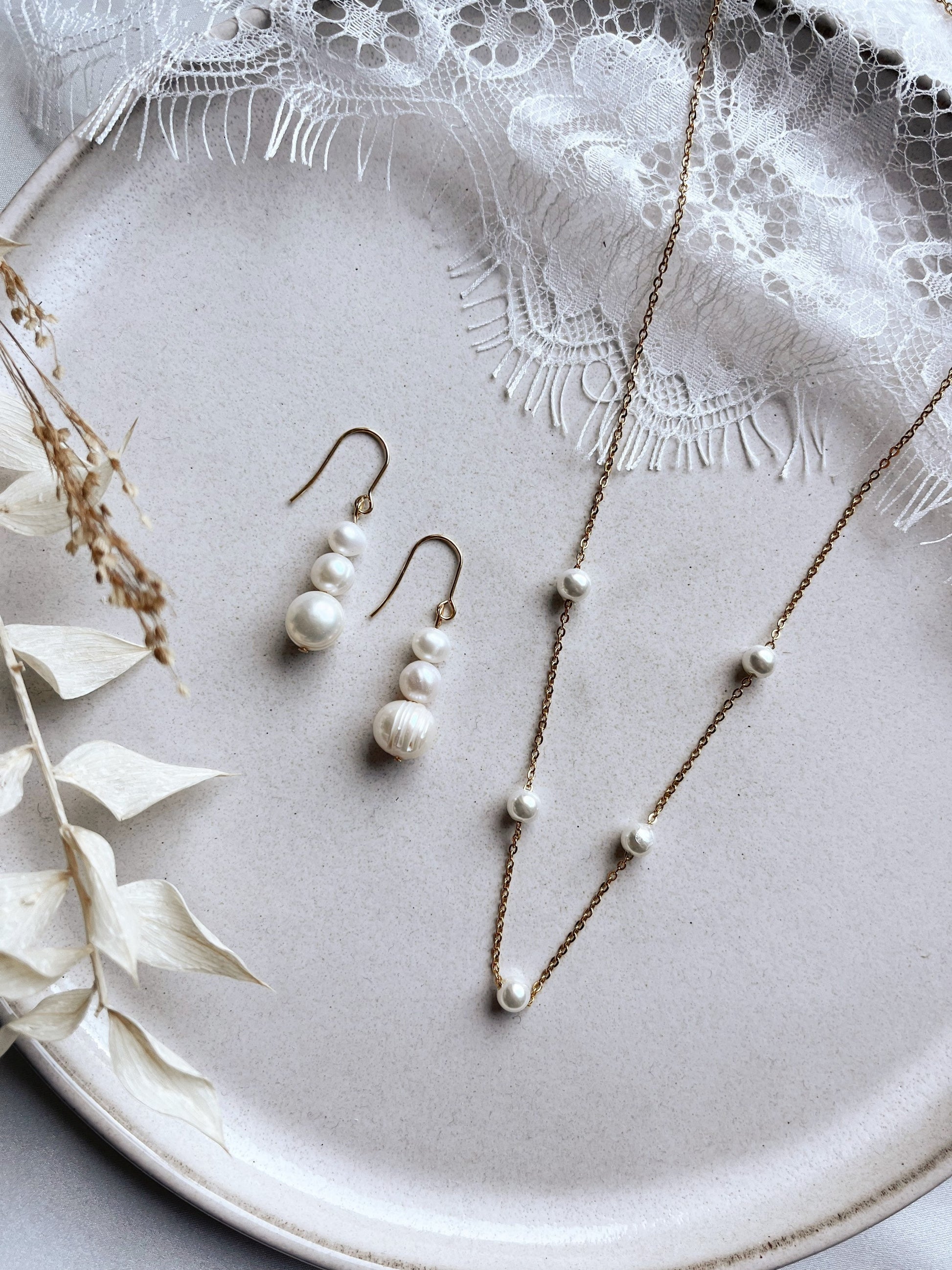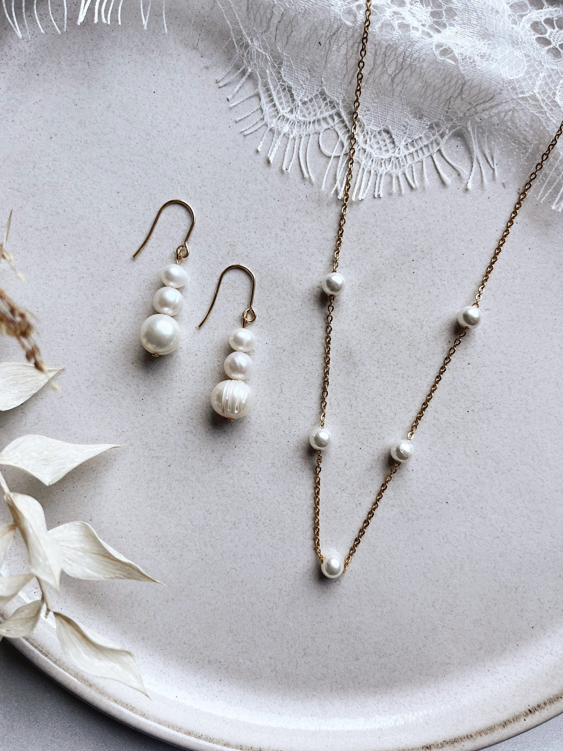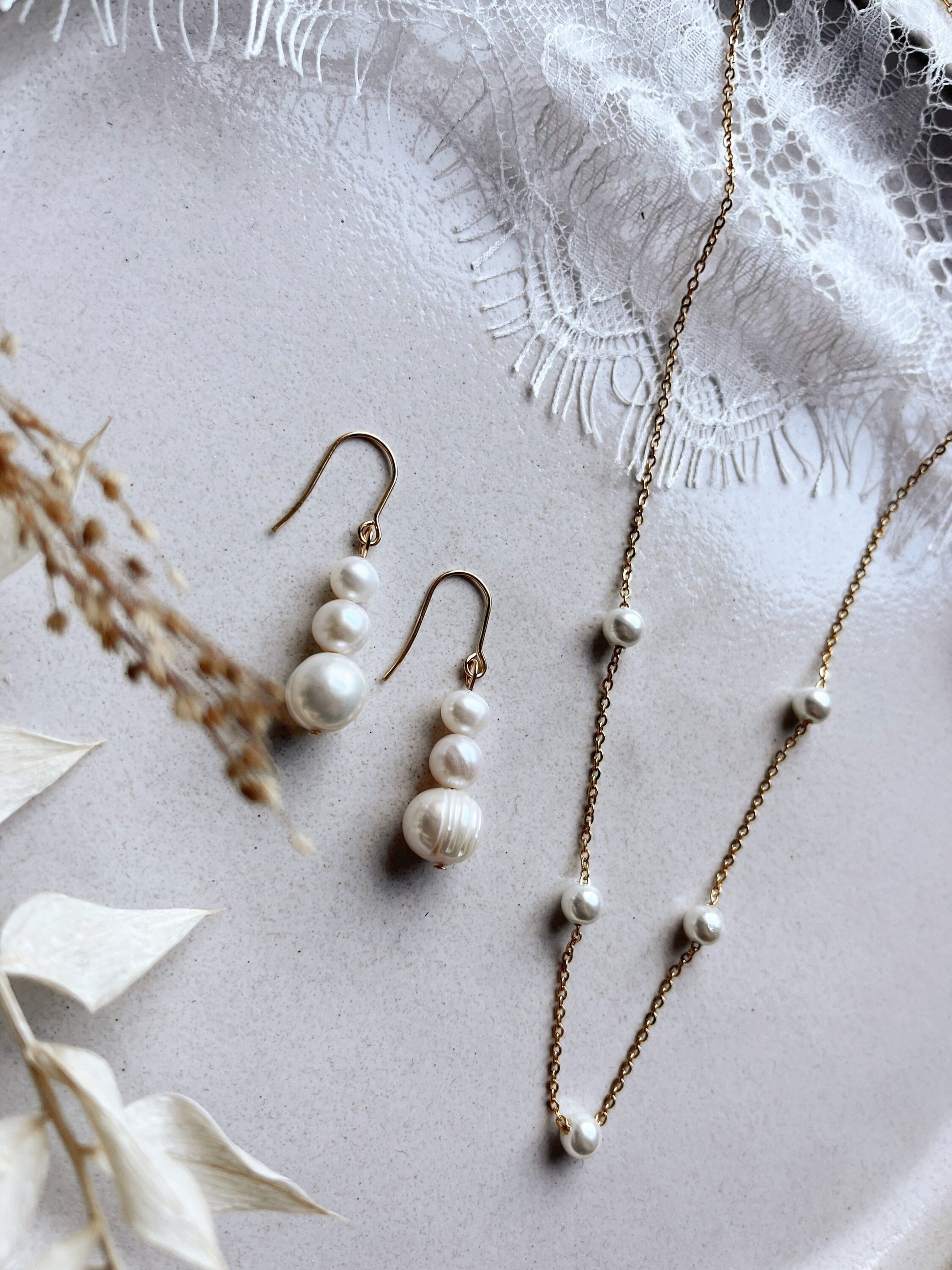 Vergoldetes Schmuckset mit Süßwasserperlen – Halskette & Ohrringe | Handgefertigt aus Edelstahl