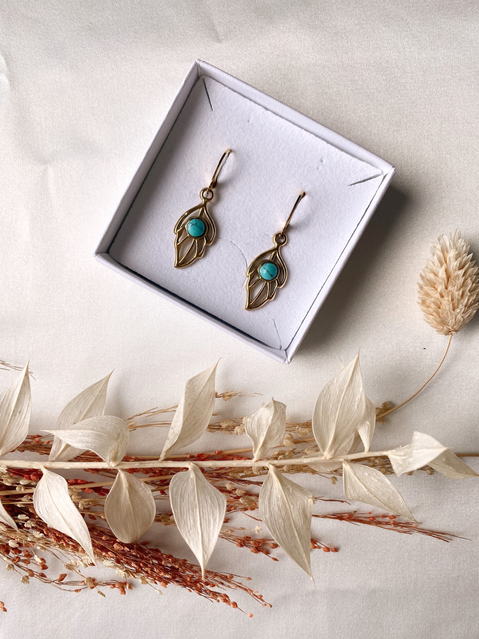 Diese Ohrringe mit Türkis in Auge- oder Federform sind kleine Glücksbringer für jeden Tag – zart, modern und voller Boho-Charme. Die leuchtenden türkisfarbenen Steine setzen ein stilvolles Highlight und bringen sofort ein Gefühl von Sommer, Freiheit und Leichtigkeit mit sich.