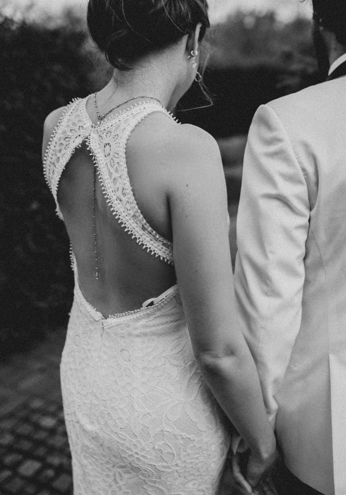 Diese goldene Rückenkette für die Braut verleiht deinem Hochzeitslook eine elegante Note und bringt deinen Rückenausschnitt auf besonders stilvolle Weise zur Geltung.