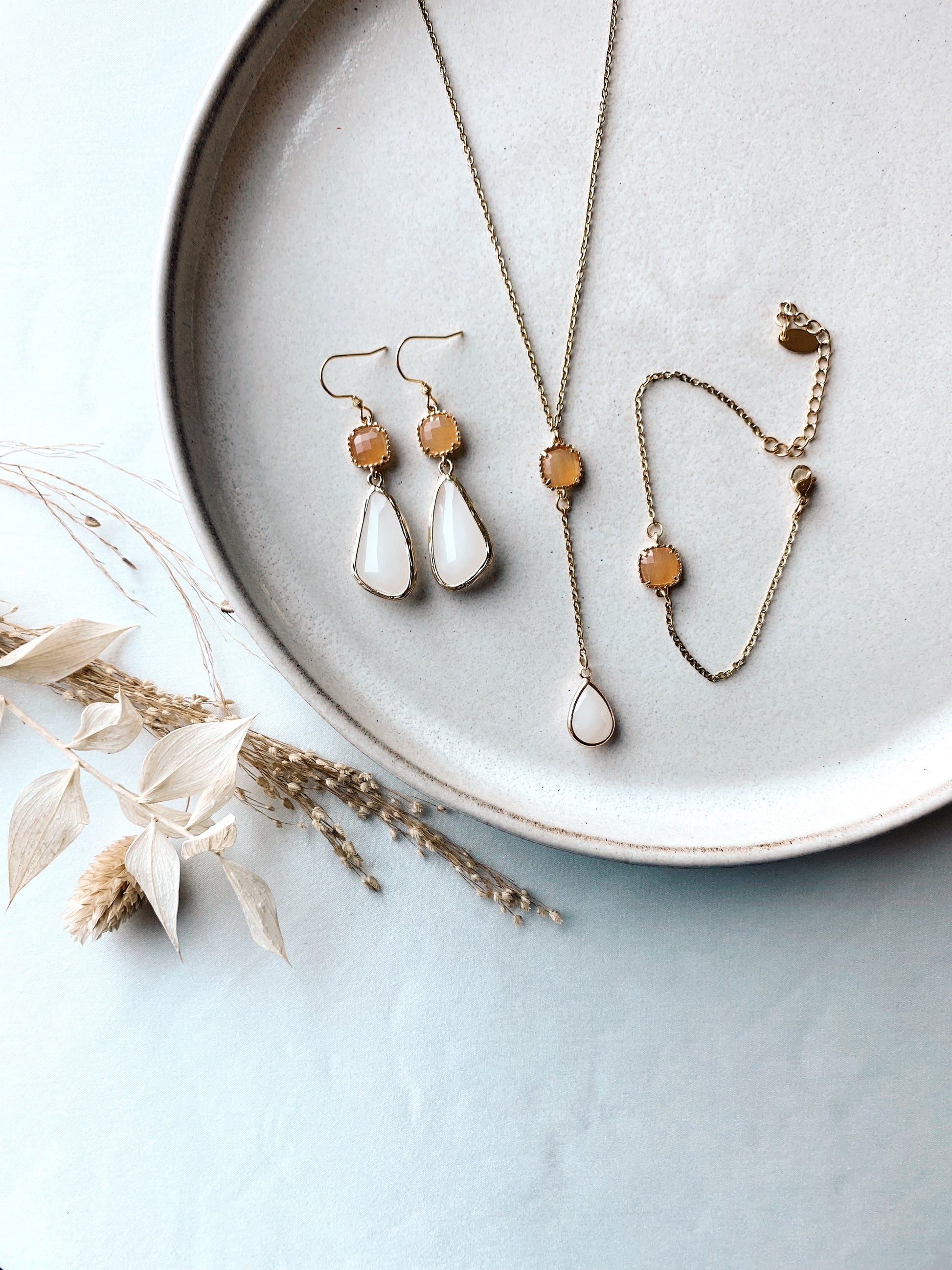 Y-Kette Lariatkette mit Tropfen Gold – Handgefertigte Halskette aus Edelstahl mit Glaselementen | Eleganter Brautschmuck & Alltagsbegleiter
