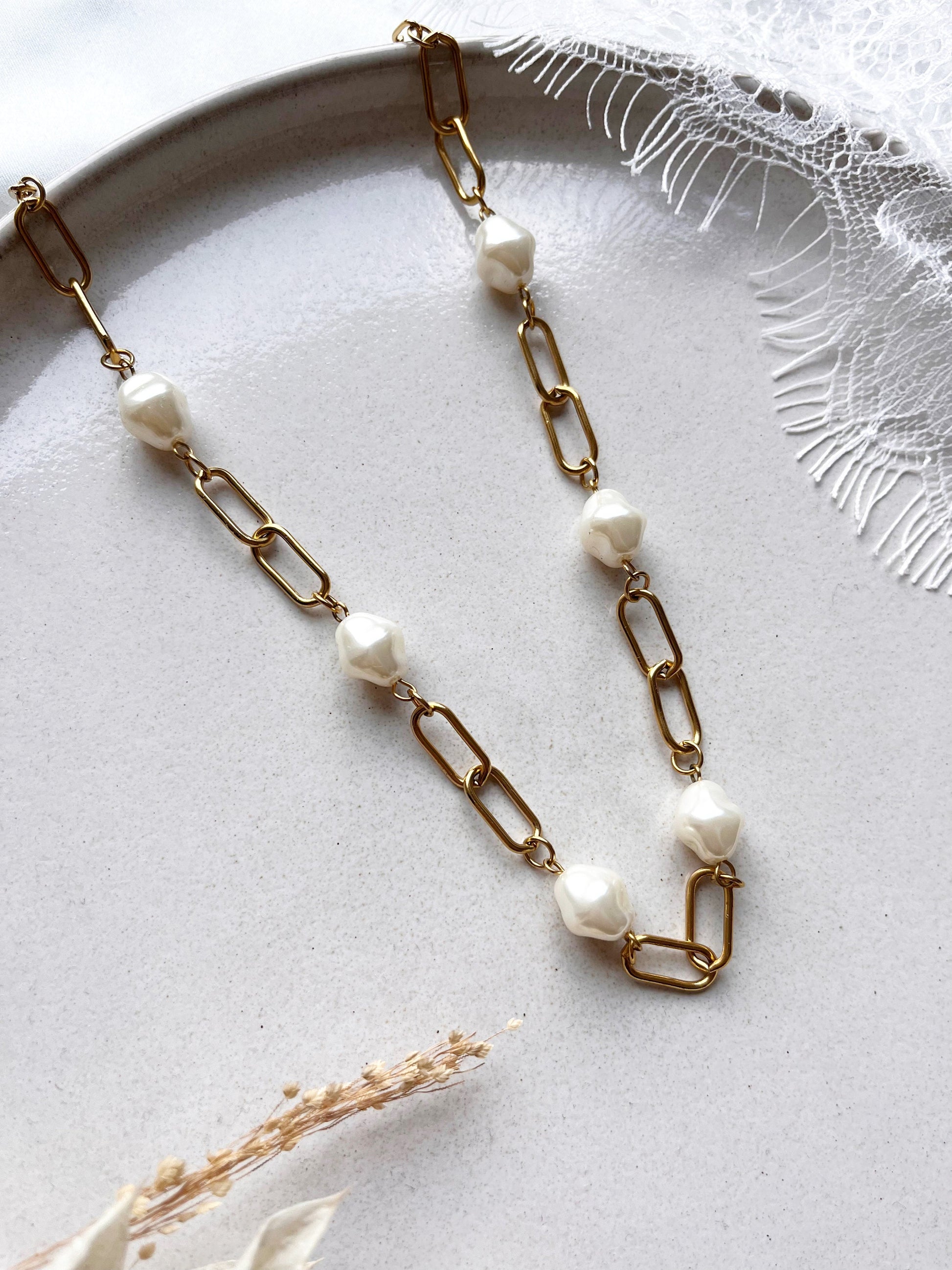 Vergoldete Edelstahl-Halskette mit Perlen – Handgefertigt | Zeitloses Design für jeden Tag