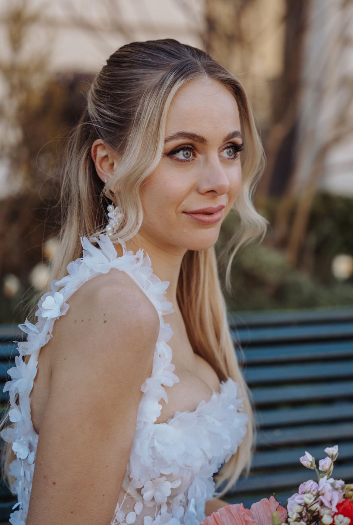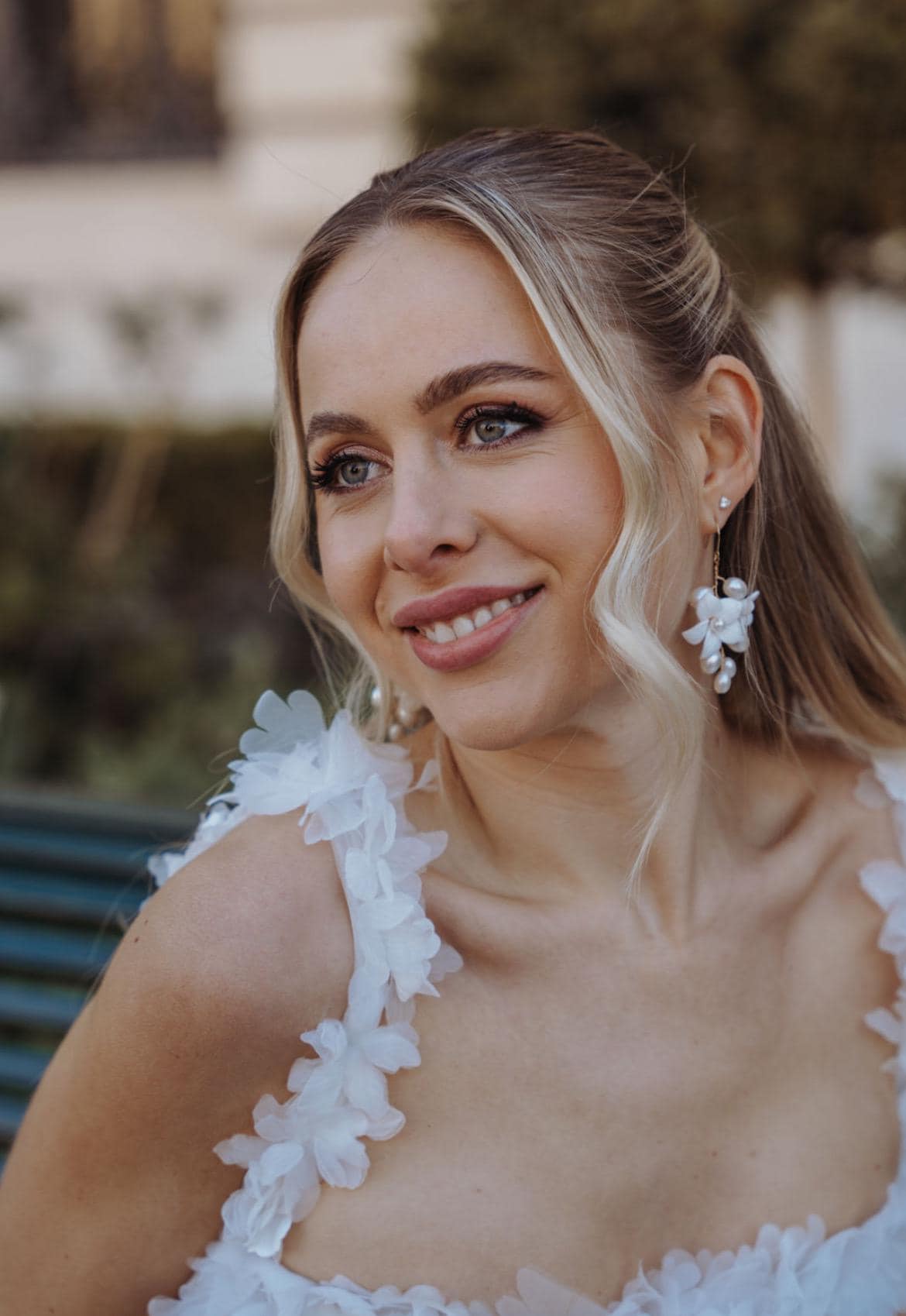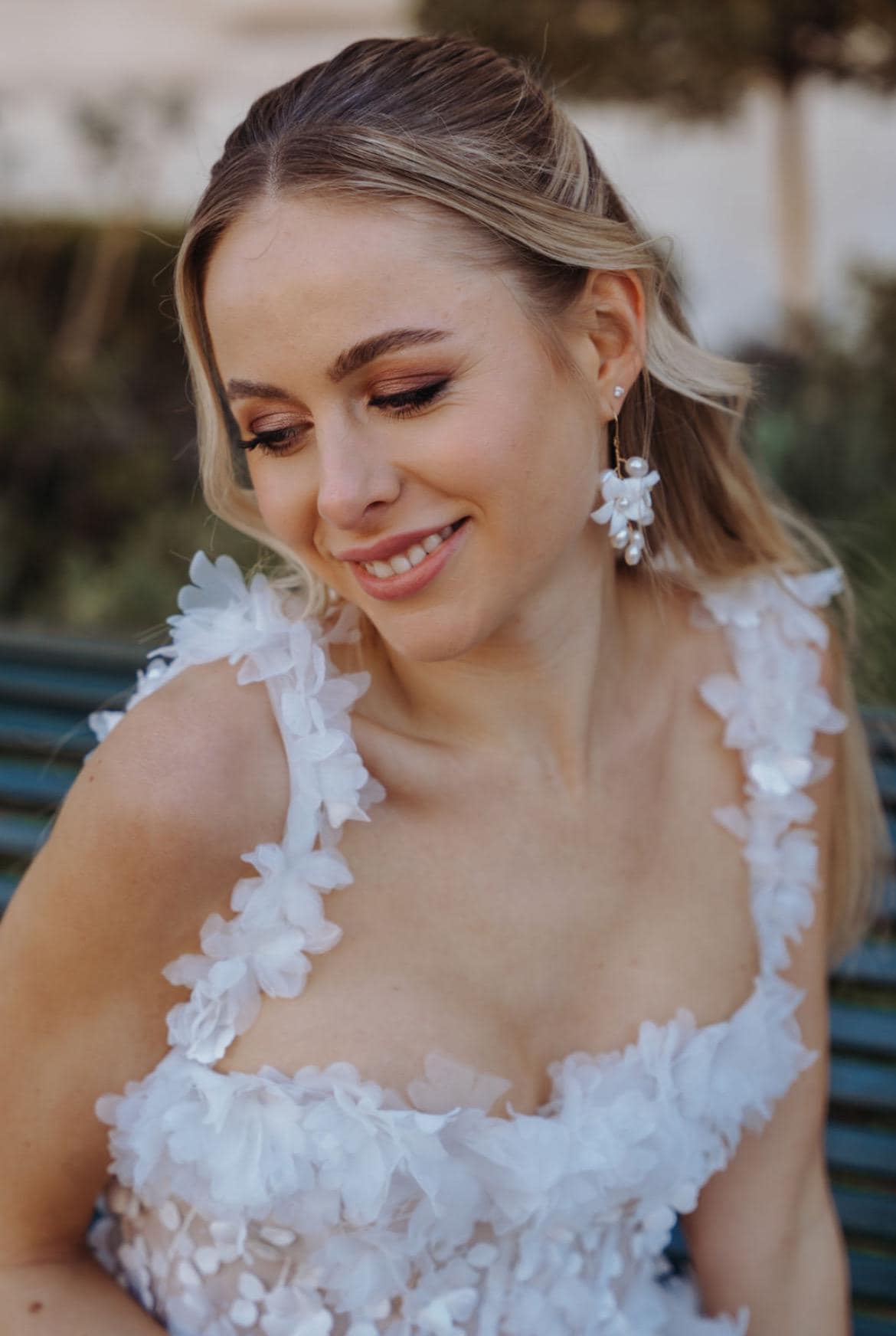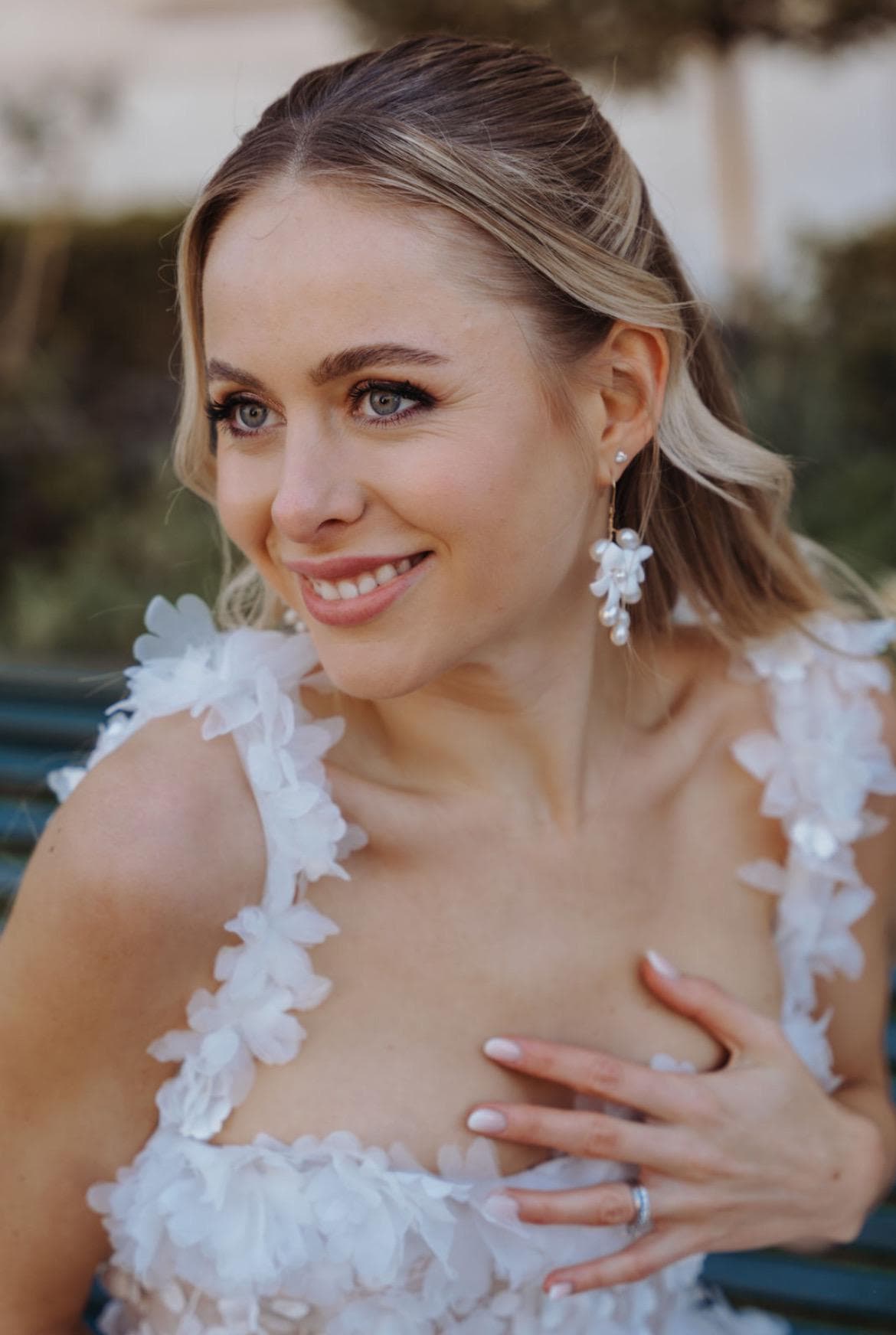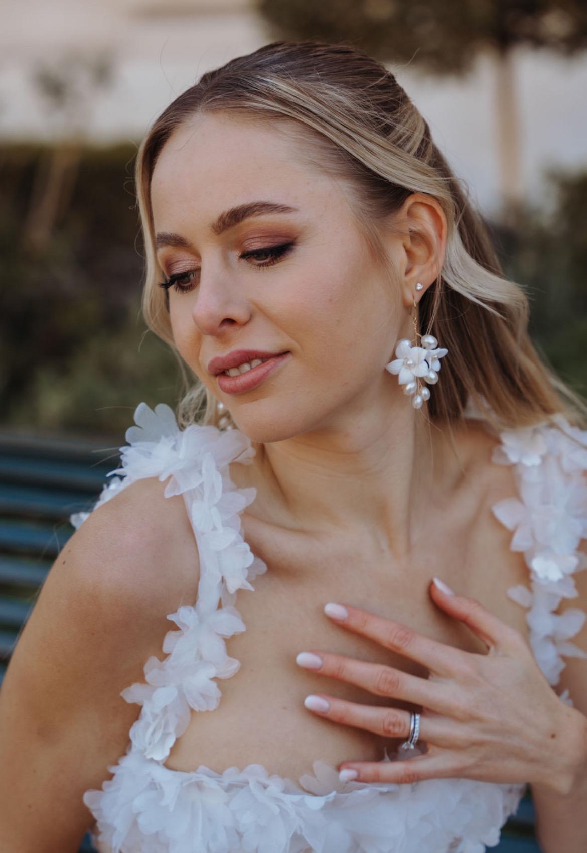 Die Ohrringe sind leicht, angenehm zu tragen und dennoch ein echter Blickfang – ideal für Bräute, die ein romantisches Statement setzen möchten.